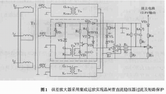 盡管功率場效應(yīng)VDMOS 和絕緣柵雙極型晶體管IGBT等電力半導(dǎo)體元器件層出不窮,且在電力電子技術(shù)領(lǐng)域占據(jù)重要位置,晶閘管(可控硅) 卻因耐高壓耐大電流沖擊的特性,仍有著穩(wěn)固的陣地,受到用戶的青睞。在擯棄電流采樣、放大和執(zhí)行等多個(gè)環(huán)節(jié)的情況下,將單結(jié)晶體管移相觸發(fā)器中的晶體管誤差放大器改為集成運(yùn)算放大器,就可實(shí)現(xiàn)晶閘管直流穩(wěn)壓器的過流及短路保護(hù),簡化了電路結(jié)構(gòu),并提高了整機(jī)的穩(wěn)定可靠性能和AC - DC變換效率。
