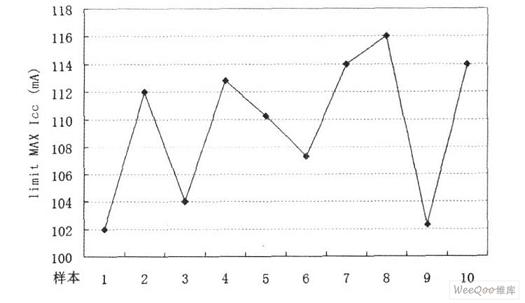 將以上設(shè)計的限流電路嵌入某穩(wěn)壓芯片(內(nèi)含電荷泵電路)中,實現(xiàn)流片量產(chǎn)(CMOS工藝)。當(dāng)VDD=3V時,通過測量量產(chǎn)芯片得到輸出電流極限數(shù)據(jù)。統(tǒng)計如圖5所示,可知當(dāng)輸出電流處于100~120mA范圍內(nèi)時,限流電路開始工作,關(guān)閉系統(tǒng)即保護(hù)LDO安全。由此可見,本設(shè)計電路結(jié)構(gòu)簡單,功能可靠,可廣泛應(yīng)用于電源芯片中。