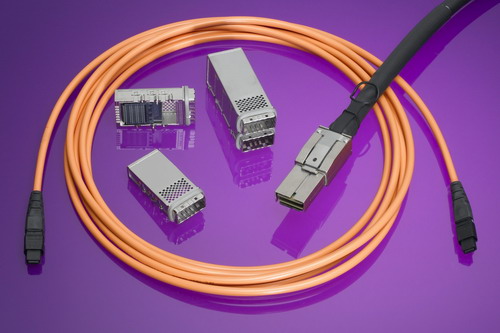 有源光纜組件:CXP 有源光纜(AOC)組件和可插拔收發(fā)器模塊采用了12個發(fā)射(TX) 和 12 個接收 (RX)通道,在多模光纖上提供每通道10 Gbps的數(shù)據(jù)速率,傳輸距離長達1km (3280.840’)。光纜終端的光電轉(zhuǎn)換由包含了專門針對低功耗和高可靠性而優(yōu)化的光引擎的集成式收發(fā)器模塊來完成。
