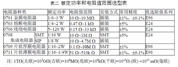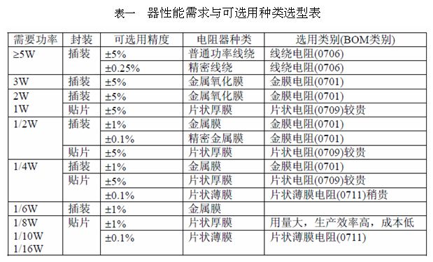 一、電阻器的歸一化選型方向總結(jié)