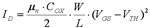 其中,μn為反型層中電子的遷移率,COX為氧化物介電常數(shù)與氧化物厚度比值,W和L分別為溝道寬度和長度。