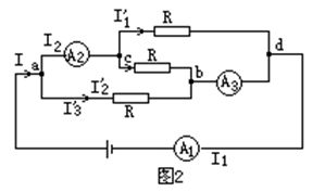 不計電流表內電阻時,三個電阻并聯(lián).設總電流為I,則通過每個電阻的電流