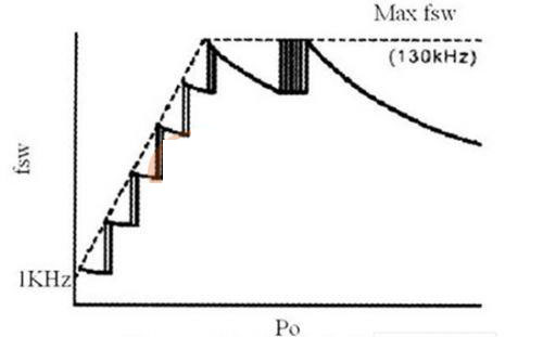 降低開關(guān)電源功耗的主要途徑是降低開關(guān)損耗和控制電路功耗。減少控制電路功耗可通過選擇功耗低、功能強(qiáng)、所需外部元件少的控制芯片及簡(jiǎn)化外部控制電路來實(shí)現(xiàn)。這里主要討論降低開關(guān)損耗的措施。許多電子產(chǎn)品在使用中常處于輕載或待機(jī)狀態(tài),而開關(guān)電源*率開關(guān)管的開關(guān)頻率都很高,當(dāng)開關(guān)電源工作在輕載或待機(jī)狀態(tài)下時(shí),開關(guān)損耗成為主要損耗,相對(duì)損耗大大增加,效率降低。降低輕載損耗的有效方法是在輕載狀態(tài)下降低開關(guān)電源的開關(guān)頻率,從而使輕載效率保持與滿載時(shí)相同。圖1中,隔離變換控制電路采用準(zhǔn)諧振電源控制器FA5531P及外圍元件構(gòu)成。FA5531P的開關(guān)頻率不是由他激振蕩器決定的固定開關(guān)頻率,而是由自激振蕩決定。芯片在正常負(fù)載時(shí)保持固定頻率的準(zhǔn)諧振開關(guān)狀態(tài),輕載時(shí)自動(dòng)降低開關(guān)頻率以減少空載損耗,最低開關(guān)頻率可降至1KHz,F(xiàn)A5531P開關(guān)頻率與輸出功率關(guān)系如圖3所示。FA5531P的另一個(gè)特點(diǎn)是具有內(nèi)部啟動(dòng)電路,從而也降低了待機(jī)功耗。FA5531P自身功耗很低,工作電流僅1.5mA,集成度高,只需極少的外部元件。
