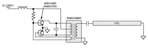 Royer架構(gòu)(圖1)的最佳應(yīng)用是在不需要嚴格控制燈頻和亮度的設(shè)計中。由於Royer架構(gòu)是自振蕩設(shè)計,受元件參數(shù)偏差的影響,很難嚴格控制燈頻和燈電流,而這兩者都會直接影響燈的亮度。因此,Royer架構(gòu)很少用於LCD電視,盡管它是本文所述四種架構(gòu)中最廉價的。
