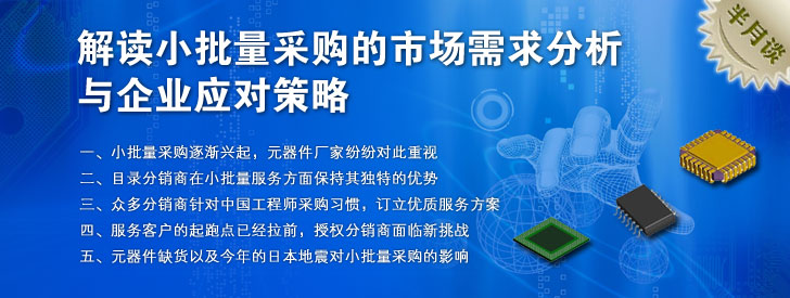 一直以來,對于那些需求旺盛、技術成熟、生產相對穩(wěn)定的產品來說,大批量采購是降低成本、提高效率和縮短交貨周期的有效途徑。而對于某些特殊的、目標客戶相對局限或固定投資產品(如工業(yè)設備, 專用器材等),或某些處于新技術、新設計推廣期的產品, 由于其市場需求量相對較小,大批量采購原材料無疑會使庫存增加,資金占用及風險加大等問題。這時最有效的方式是降低采購批量,按需采購。然而,由于大部分供貨商都有最小包裝及最小訂貨量的要求,降低采購批量,按需采購變得十分困難。尤其是那些規(guī)模較小的企業(yè),更是對小批量采購深感頭疼。那么對于元器件廠家來說,他們應該如何去根據(jù)企業(yè)的發(fā)展特色,去適應這個市場,并針對當前市場的發(fā)展趨勢,提出自己的小批量采購服務策略。