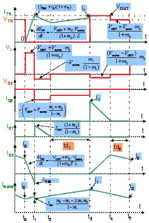 為在[t1-t2]和[t3-t4]時(shí)序期間符合斷續(xù)模式,圖5所示的時(shí)間參數(shù)td1和td2應(yīng)總是正值。根據(jù)典型連續(xù)導(dǎo)通模式(CCM)功率因數(shù)校正規(guī)則和tD1_ON 和tD2_ON 表達(dá)式,確定變壓比條件m1 和 m2 不是難事。