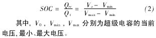 如果僅采用超級(jí)電容作為唯一輔助能源還存在諸多不足之處,如:電動(dòng)汽車長(zhǎng)時(shí)間停機(jī)后再次啟動(dòng),由于超級(jí)電容的自放電效應(yīng),在燃料電池的能量輸出尚未穩(wěn)定時(shí)車載輔助系統(tǒng)的供電將無(wú)法保障。況且超級(jí)電容能量密度很低,若要達(dá)到一定的能量?jī)?chǔ)備能力其設(shè)備體積勢(shì)必加大。當(dāng)前超級(jí)電容都是與其他動(dòng)力電池一起購(gòu)車輔助電源系統(tǒng),在燃料電池汽車上使用的。為了克服精確的描述超級(jí)電容的特性,可以采用阻抗法進(jìn)行建模代替簡(jiǎn)單RC回路模型。超級(jí)電容當(dāng)前SOC主要基于超級(jí)電容的輸出電壓: