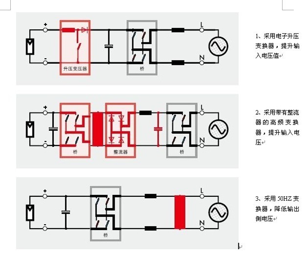 與標(biāo)準(zhǔn)逆變器的基本設(shè)計(jì)不同,直接并網(wǎng)逆變器有很多方法來(lái)調(diào)整或提升輸入電壓范圍。常用的逆變器技術(shù)方案與結(jié)構(gòu)都各不相同: