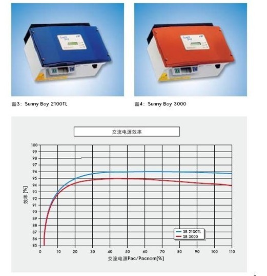 圖5:外觀相同,內(nèi)部電路不同:變壓器型和無(wú)變壓器型兩種Sunny Boy效率特性。