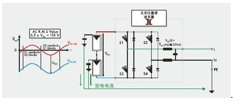 將來(lái)自光伏組件的電壓采用高頻率(20kHz)轉(zhuǎn)換過(guò)程中,高頻電壓應(yīng)等同于電網(wǎng)電壓峰值;這些電壓在逆變器內(nèi)部被認(rèn)為是干擾,濾波器可以阻斷這些干擾,防止其進(jìn)入電網(wǎng)。但在理論上,阻止來(lái)自發(fā)電電源側(cè)的直流分量進(jìn)入交流電網(wǎng)是不可能絕對(duì)實(shí)現(xiàn)的。