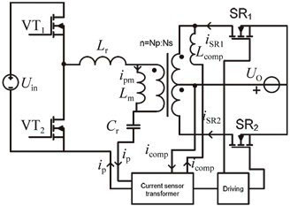 由于LLC諧振變流器的勵(lì)磁電流較大,導(dǎo)致一次側(cè)電流與二次側(cè)電流之間存在相位差,因此,可以采用補(bǔ)償電感L comp對相位進(jìn)行補(bǔ)償,而有文獻(xiàn)則采用輔助變壓器對一次側(cè)電流進(jìn)行采樣。這兩種驅(qū)動(dòng)方案都可以解決相位差問題,而且沒有增加大型的磁性元件,有利于提高效率和功率密度。
