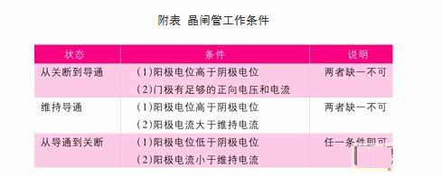 由于晶閘管只有導通和關斷兩種工作狀態(tài),所以它具有開關特性,這種特性需要一定的條件才能轉化,此條件如附表所示。