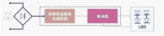 led 的排列方式及LED光源的規(guī)范決定著基本的驅(qū)動(dòng)器 要求。LED 驅(qū)動(dòng)器的主要功能就是在一定的工作條件范圍下限制流過(guò)LED 的電流, 而無(wú)論輸入及輸出電壓如何變化。LED驅(qū)動(dòng)器基本的工作電路示意圖如圖4所示,其中所謂的“隔離”表示交流線路電壓與LED(即輸入與輸出)之間沒(méi)有物理 上的電氣連接,最常用的是采用變壓器來(lái)電氣隔離,而“非隔離”則沒(méi)有采用高頻變壓器來(lái)電氣隔離。