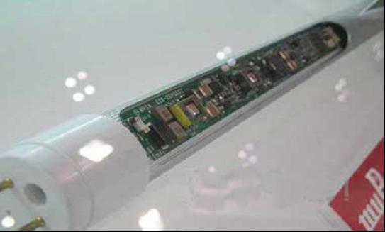 日本村田制作所展示過無需電解電容器的LED照明用電源,該驅(qū)動電源是面向Clear Sodick開發(fā)的電源模塊,其輸入輸出電容器采用了該公司的多層陶瓷電容(MLCC),可內(nèi)置于直管型LED照明器具的管內(nèi)。與采用鋁電解電容器時相比,除了可縮小產(chǎn)品尺寸外,還能延長產(chǎn)品壽命。為了獲得恒定電流,采用了DSP微控制器,開關(guān)頻率約為200kHz。輸出電容器采用了兩個約5μF的MLCC。輸入電壓支持AC100V以及200V兩種。