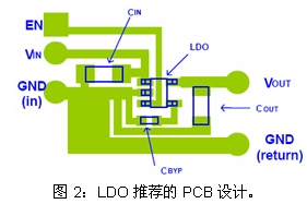 如在TCXO(溫度補償晶振)電源中,其只需要5mA的負(fù)載電流,Vout固定,若能控制Vin的值僅稍大于Vout+Vdrop,(一般地,CMOS LDO的Vdrop在Iout=5mA條件下,其值為5mV~10mV),則LDO的自身功耗Pd在不到1mW,這取決于方案設(shè)計工程師在應(yīng)用電路中的設(shè)計。
