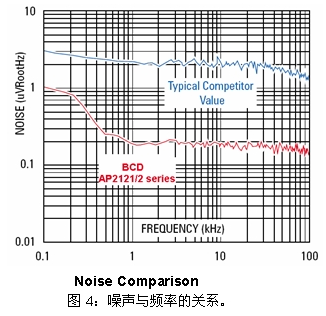 當(dāng)然也有例外,個別歐美的大廠商采用先進的工藝設(shè)計生產(chǎn)的的CMOS LDO把本該外面加的Bypass電容做到了芯片里面,這樣的LDO產(chǎn)品的噪聲約為100 uVrms的水平。