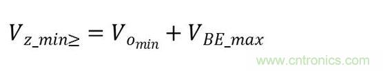 輸出電壓等于反向齊納電壓VZ減去該晶體管基極至發(fā)射極電壓VBE。因此,最低反向齊納電壓應(yīng)符合下述要求(方程式1):
