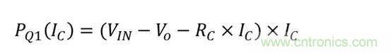 就晶體管Q1而言,因?yàn)橛邢蘖麟娮杵鱎C,所以在短路事件中不會(huì)發(fā)生最壞情況下的功耗。在正常運(yùn)行期間Q1的功耗是集電極電流的函數(shù),如方程式7所示: