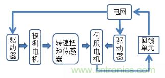 伺服電機(jī)可以進(jìn)行電機(jī)對(duì)拖,公共直流母線采用單獨(dú)的整流/回饋裝置,為系統(tǒng)提供電能,調(diào)速用逆變器直接掛接在直流母線上,當(dāng)系統(tǒng)工作在電動(dòng)狀態(tài)時(shí),逆變器從母線上獲取電能;當(dāng)負(fù)載被被測(cè)電機(jī)反向拖動(dòng)的時(shí)候,伺服電機(jī)將會(huì)變成發(fā)電機(jī),能量通過母線及回饋裝置直接回饋給電網(wǎng),以達(dá)到節(jié)能、提高設(shè)備運(yùn)行可靠性等目的。