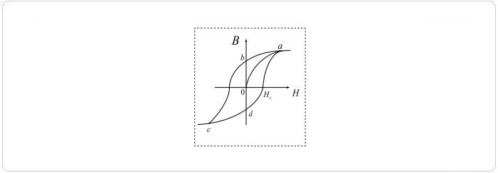 一般磁性材料都有S形狀曲線的特性,稱之為磁滯回路(hysteresis loop),如圖2所示。此磁滯回路曲線建立在B—H的坐標(biāo)軸上,為磁性材料遭受完全磁化與非磁化周期,圖示為典型磁滯曲線的鐵心,如果曲線由a點開始,此點表示最大正磁化力,至b點磁化力為零,然后下降至c點為最大負(fù)磁化力,再至d點磁化力為零,最后返回最大正磁化力的a點,此即為整個磁性周期。高導(dǎo)磁率、低矯頑力磁芯的磁滯回線如圖3所示。