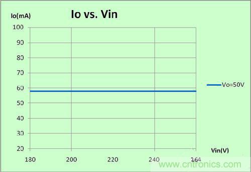 功率因數(shù): >0.5 效率:>88%輸出電壓范圍:3~50VDC 輸出電流:60mA
