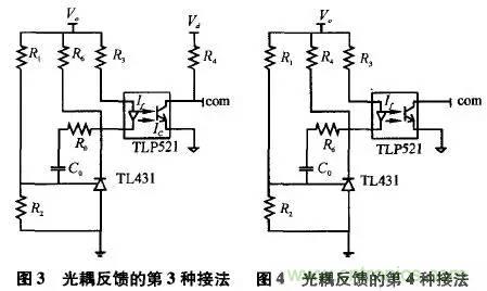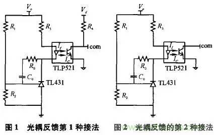 本研究將詳細(xì)分析光耦工作原理,并針對(duì)光耦反饋的幾種典型接法加以對(duì)比研究。1、常見的幾種連接方式及其工作原理常用于反饋的光耦型號(hào)有TLP521、PC817等。這里以TLP521為例,介紹這類光耦的特性。TLP521的原邊相當(dāng)于一個(gè)發(fā)光二極管,原邊電流If越大,光強(qiáng)越強(qiáng),副邊三極管的電流Ic越大。副邊三極管電流Ic與原邊二極管電流If的比值稱為光耦的電流放大系數(shù),該系數(shù)隨溫度變化而變化,且受溫度影響較大。作反饋用的光耦正是利用“原邊電流變化將導(dǎo)致副邊電流變化”來實(shí)現(xiàn)反饋,因此在環(huán)境溫度變化劇烈的場(chǎng)合,由于放大系數(shù)的溫漂比較大,應(yīng)盡量不通過光耦實(shí)現(xiàn)反饋。此外,使用這類光耦必須注意設(shè)計(jì)外圍參數(shù),使其工作在比較寬的線性帶內(nèi),否則電路對(duì)運(yùn)行參數(shù)的敏感度太強(qiáng),不利于電路的穩(wěn)定工作。通常選擇TL431結(jié)合TLP521進(jìn)行反饋。這時(shí),TL431的工作原理相當(dāng)于一個(gè)內(nèi)部基準(zhǔn)為2.5V的電壓誤差放大器,所以在其1腳與3腳之間,要接補(bǔ)償網(wǎng)絡(luò)。TL431是三端可編程并聯(lián)穩(wěn)壓二極管