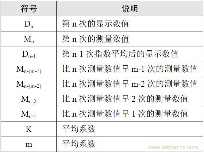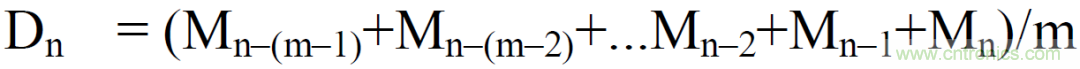 移動(dòng)平均法,用戶可設(shè)定移動(dòng)個(gè)數(shù)對(duì)電壓或電流有效值、有功功率的瞬時(shí)值(采樣數(shù)據(jù))進(jìn)行移動(dòng)平均,其原理是采集N個(gè)信號(hào)之后對(duì)這些數(shù)據(jù)求平均,其中移動(dòng)個(gè)數(shù)N可以手動(dòng)設(shè)置,移動(dòng)個(gè)數(shù)設(shè)置值越大測(cè)量值越穩(wěn)定,同樣對(duì)輸入變化的響應(yīng)速度也就越慢,該平均方法多用于信號(hào)本身存在波動(dòng)的情況,比如因負(fù)載波動(dòng)導(dǎo)致信號(hào)本身波動(dòng),就建議用移動(dòng)平均,移動(dòng)平均公式如下: