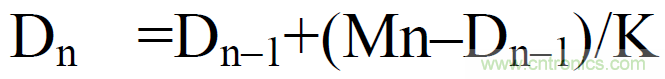 選擇指數(shù)平均法,用戶可設(shè)定衰減常數(shù)對(duì)電壓或電流有效值、有功功率的瞬時(shí)值(采樣數(shù)據(jù))進(jìn)行指數(shù)平均,去除被測(cè)量的高頻成分。其中衰減常數(shù)可以手動(dòng)設(shè)置,衰減常數(shù)設(shè)置值越大測(cè)量值越穩(wěn)定,對(duì)輸入變化的響應(yīng)速度也就越慢,也就是說測(cè)量延遲會(huì)相應(yīng)變長。該平均法常用于信號(hào)中存在高頻信號(hào),通過設(shè)定衰減常數(shù)減小高頻信號(hào)對(duì)數(shù)據(jù)的干擾,公式如下:
