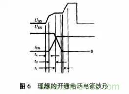 在大多數(shù)的開關(guān)功率應(yīng)用電路中,當(dāng)柵極被驅(qū)動,開關(guān)導(dǎo)通時漏極電流上升的速度是漏極電壓下降速度的幾倍,這將造成功率損耗增加。為了解決問題可以增加?xùn)艠O驅(qū)動電流,但增加?xùn)艠O驅(qū)動上升斜率又將帶來過沖、振蕩、EMI等問題。優(yōu)化柵極驅(qū)動設(shè)計,正是在互相矛盾的要求中尋求一個平衡點(diǎn),而這個平衡點(diǎn)就是開關(guān)導(dǎo)通時漏極電流上升的速度和漏極電壓下降速度相等這樣一種波形,理想的驅(qū)動波形如圖6所示。