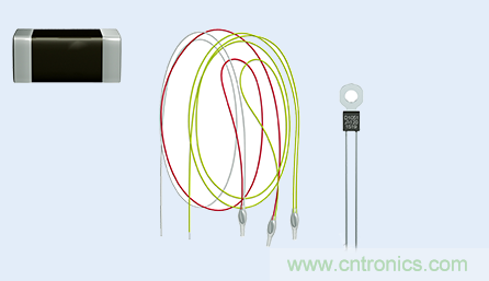 從左至右:安裝在印刷電路板上的SMT正溫度系數(shù) (PTC) 傳感器、與電機繞組進(jìn)行集成的正溫度系數(shù) (PTC) 傳感器、安裝在散熱片上帶接線端子的正溫度系數(shù) (PTC) 傳感器。