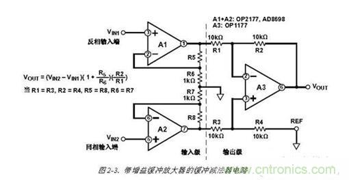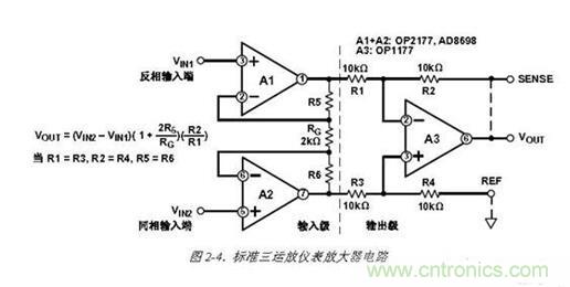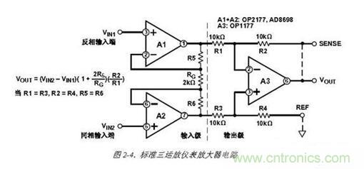 最后,由于結(jié)構(gòu)上的對稱性,輸入放大器的共模誤差,如果它們跟蹤,將被輸出級的減法器消除。這包括諸如共模抑制隨頻率變換的誤差。上述這些特性便是這種三運(yùn)放結(jié)構(gòu)得到廣泛應(yīng)用的解釋。