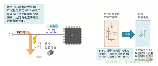 ●兼顧ESD對(duì)策與抑制噪音(貼片壓敏電阻)