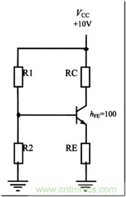 注意,在模電書中會(huì)有一個(gè)條件,若是三極管的輸入阻抗Rin-resistance ≈ hFE * Re,Rin-resistance ≥ 10R2,則滿足下式: