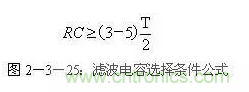 電容濾波電路圖見圖2-3-23,電容濾波電路是利用電容的充放電原理達到濾波的作用。在脈動直流波形的上升段,電容C1充電,由于充電時間常數(shù)很小,所以充電速度很快;在脈動直流波形的下降段,電容C1放電,由于放電時間常數(shù)很大,所以放電速度很慢。在C1還沒有完全放電時再次開始進行充電。這樣通過電容C1的反復充放電實現(xiàn)了濾波作用。濾波電容C1兩端的電壓波形見圖2-3-24(b)。
