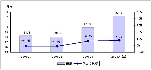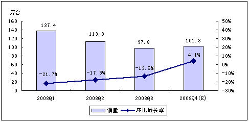 - 賽迪顧問預(yù)計(jì),2008年第四季度,中國(guó)MP3/PMP市場(chǎng)銷量為134.0萬臺(tái)