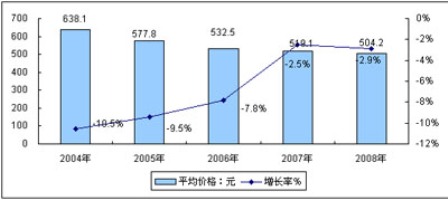 2008年,中國DVD播放機(jī)市場中的主導(dǎo)產(chǎn)品仍然是500元以下的較低端產(chǎn)品,中低端市場份額繼續(xù)保持其主力地位,臺(tái)式DVD機(jī)市場穩(wěn)步衰退,價(jià)格下降空間有限,沒有較大波動(dòng),而移動(dòng)DVD播放機(jī)、刻錄DVD播放機(jī)等高端產(chǎn)品的價(jià)格下降較快。