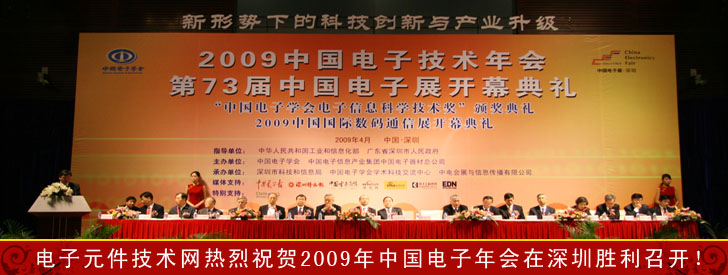 中國(guó)經(jīng)濟(jì)發(fā)展正步入一個(gè)新的歷史時(shí)期。創(chuàng)新技術(shù)帶動(dòng)產(chǎn)業(yè)升級(jí)成為振興電子行業(yè)的重要舉措。而產(chǎn)學(xué)研合作已經(jīng)成為技術(shù)創(chuàng)新的重要途徑。這次將2009年中國(guó)電子技術(shù)年會(huì)、中國(guó)電子學(xué)會(huì)電子信息科學(xué)技術(shù)獎(jiǎng)?lì)C獎(jiǎng)大會(huì)、和第73屆中國(guó)電子展同時(shí)在深圳召開(kāi),就是這樣一個(gè)落實(shí)科學(xué)發(fā)展觀、轉(zhuǎn)變經(jīng)濟(jì)增長(zhǎng)方式、大力推進(jìn)自主創(chuàng)新的具體的實(shí)實(shí)在在的行動(dòng)。
