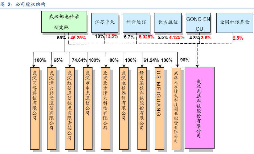 事件評論光迅科技基本情況光迅科技主要從事通信領(lǐng)域內(nèi)光電子器件的研究、開發(fā)、制造和技術(shù)服務(wù),光電子器件是光傳輸設(shè)備的基礎(chǔ)元器件,為光通信系統(tǒng)最重要的組成部分。公司是國家高技術(shù)研究發(fā)展計劃成果產(chǎn)業(yè)基地(區(qū)域類)--武漢光通信與光傳感材料及器件成果產(chǎn)業(yè)化基地的主要建設(shè)單位之一,并被國家科學(xué)技術(shù)部火炬高技術(shù)產(chǎn)業(yè)開發(fā)中心認(rèn)定為"國家火炬計劃重點高新技術(shù)企業(yè)"。