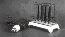 愛迪生發(fā)明的白熾燈把世界帶入了電氣時(shí)代,但墻壁插座并非與燈泡同時(shí)出現(xiàn)??紤]成本因素,當(dāng)電扇、電烤面包機(jī)、吸塵器、電吹風(fēng)出現(xiàn)時(shí),它們?nèi)匀谎匾u了燈泡的供電方式——接到燈頭座上(圖1.1)。盡管HarveyHubbell在1904年發(fā)明了更方便的2芯插頭/座(圖1.2),但采用燈頭取電的方式一直沿用到20世紀(jì)20年代。