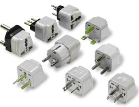 可以預(yù)見,在相當(dāng)長的時(shí)間內(nèi),交流電插頭/座還會維持現(xiàn)狀。在不能統(tǒng)一標(biāo)準(zhǔn)而又要解決互換使用的情況下,轉(zhuǎn)接適配器(圖2.3)成為目前行之有效的辦法。實(shí)現(xiàn)將某種插座轉(zhuǎn)換成能與多種插頭匹配的樣式(圖2.4)。適配器自身插頭改進(jìn)后,適用范圍可更廣。