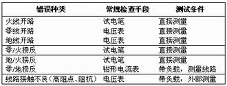 表4.1插座常見接線錯(cuò)誤與檢查手段