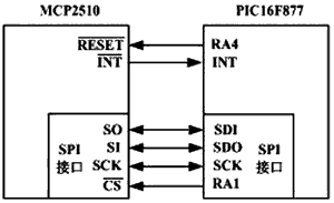 PIC16F87x通過SPI接口和MCP2510進(jìn)行數(shù)據(jù)交換。