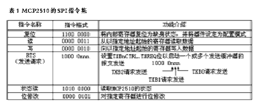 MCP2510在SCK下降沿通過SO引腳發(fā)送表1列出了所有操作的指令字節(jié)。