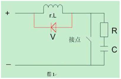 由于繼電器接點(diǎn)通斷的電流較小,接點(diǎn)間不會(huì)出現(xiàn)電弧,但會(huì)出現(xiàn)“火花放電”,這是由于接點(diǎn)電路中存在電感,則在斷開(kāi)時(shí)電感上會(huì)出現(xiàn)過(guò)電壓,它與電源電壓一起加在接點(diǎn)間隙上,使剛分開(kāi)一點(diǎn)距離的接點(diǎn)間隙擊穿而放電。由于能量所限,只會(huì)產(chǎn)生火花放電,接點(diǎn)間存在的電容與電感中能量的交替轉(zhuǎn)換,使火花放電時(shí)隱時(shí)現(xiàn),而成為一種高頻信號(hào),再者火花放電對(duì)接點(diǎn)也會(huì)造成損傷,而會(huì)降低使用壽命,因此必須設(shè)法消除,實(shí)用的消火花電路有兩種,如圖1所示。一.其基本作用原理是,使電感中的能量不通過(guò)接點(diǎn)而通過(guò)rc;二.在斷開(kāi)時(shí)經(jīng)過(guò)二極管v在負(fù)載r.l上消耗掉。在應(yīng)用中選擇一種就行了。但要注意的是,rc參數(shù)要選擇適當(dāng),參數(shù)主要靠實(shí)驗(yàn)來(lái)決定,通常電容c可按負(fù)載電流1a/1微法選擇。使用二極管時(shí)其正負(fù)極性應(yīng)連接正確。
