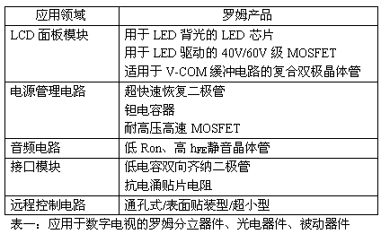 除了半導體IC,羅姆公司的分立和被動元件產品,也可以在數字電視的LCD面板模塊、電源管理電路、音頻電路、接口模塊、遠程控制電路等領域有廣泛的應用。