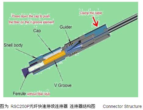 RSC250P光纖快速接續(xù)連接器采用非預(yù)置光纖技術(shù),精密金屬V型槽同軸自準(zhǔn)可靠固緊,宇特專利的箱砌式雙卡緊裝置,防縮尾彎設(shè)計,一體化防摔抗壓結(jié)構(gòu)。成端性能優(yōu)異,完全達(dá)到FTTH光纖到戶使用要求。