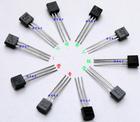 10.判別紅外接收頭引腳萬用表置R×1k擋,先假設(shè)接收頭的某腳為接地端,將其與黑表筆相接,用紅表筆分別測量另兩腳電阻,對比兩次所測阻值(一般在4~7k Q范圍),電阻較小的一次其紅表筆所接為+5V電源引腳,另一阻值較大的則為信號引腳。反之,若用紅表筆接已知地腳,黑表筆分別測已知電源腳及信號腳,則阻值都在15kΩ以上,阻值小的引腳為+5V端,阻值偏大的引腳為信號端。如果測量結(jié)果符合上述阻值則可判斷該接收頭完好。