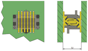 這其中典型的合成連接器例子有:M型歐式連接器、2mmHM的M型連接器以及D-Sub連接器。舉個例子,ERmet2mmM型彎角母連接器提供55針(5排x11行針),并備有三個特殊針腔供放置電源端子或同軸端子。這類連接器可以被單獨使用,也可以與2mm其他類型如A、B、C、L或N型組合。相對的,ERmetM型垂直公連接器有多達77針(7排x11行針),其中兩行外排(22針)將與母連接器的屏蔽板連接。相應(yīng)的,公連接器也有三個特殊針腔供放置電源端子或同軸端子。單純的電源模塊例子包括2mmHM電源模塊、MicroSpeed電源模塊以及ATCA電源連接器。除此之外,還有板到線的電源連接——MiniBridge及MaxiBridge。