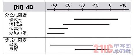 電阻器中電流噪聲等級通常用單位μV/V或者分貝(按照噪聲指數(shù)[NI]dB)表示