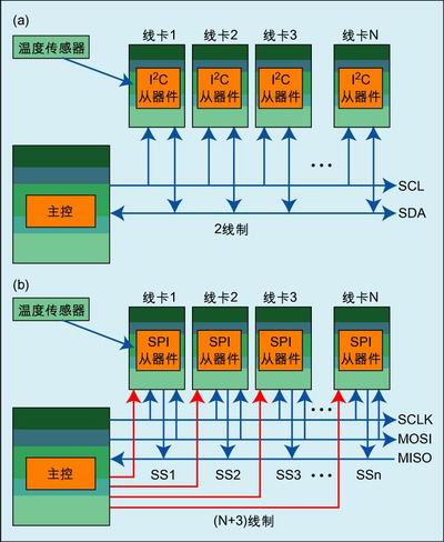 圖3:(a)I2C總線/SMBus系統(tǒng)接口;(b)SPI 系統(tǒng)接口。